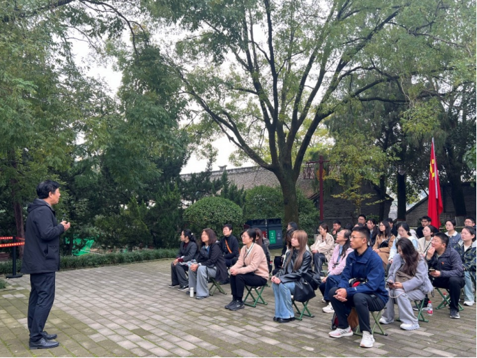 在旧址的大槐树下,渭华起义纪念馆馆长史小宏老师为师生们开展了一场题为《渭华起义革命精神及时代价值》的特色党课。