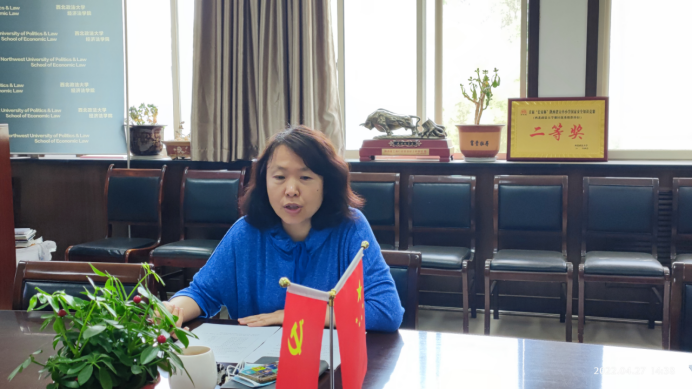 在长安校区正心楼资料室以线上线下方式召开2021年度党支部书记述职考核评议会,学院党委委员、各支部书记、教师和学生党员代表参加会议,会议由院党委书记李建梅主持。