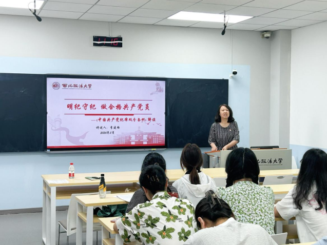 研究生第二党支部开展“知敬畏,存戒惧,守底线”党纪学习教育暨党委书记讲党课活动。学院党委书记李建梅、党委组织员李小斐出席会议,支部书记张钰滢主持,全体党员参加。