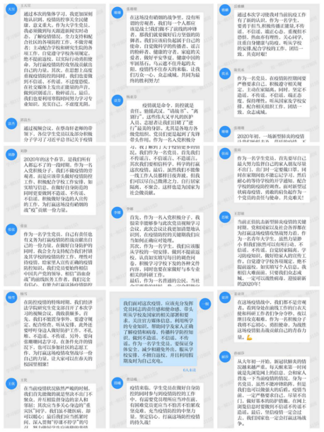 大家纷纷表示,疫情面前没有所谓旁观者,身为党员更应该发挥作用,有一分热,就发一分光。会在做好自身防护的基础上,主动配合学校的疫情防控工作,积极参与防疫志愿活动,以实际行动践行初心、勇担使命,带头预防、率先垂范,为打赢疫情防控“战疫”贡献自己的青春力量。