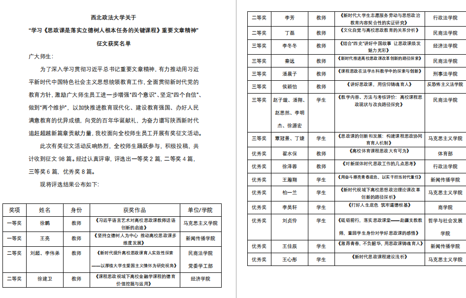 据了解,此次有奖征文活动反响热烈,全校师生踊跃参与,积极投稿,共计收到征文 98 篇。经过认真评审,评选出一等奖 2 篇,二等奖 4 篇,三等奖 6 篇,优秀奖 8 篇。