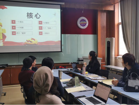 此次主题党日活动,经济法教研室党支部主要深入学习贯彻习近平法治思想,会上大家畅谈了学习的心得体会。党支部书记田静婷首先带领全体党支部同志深入学习习近平总书记在思政理论课教师座谈会上的讲话,并对讲话的核心内容进行了详细的解读。