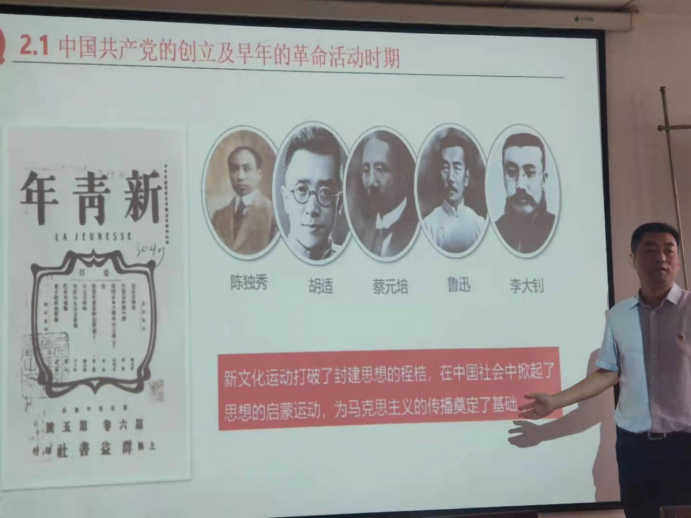之后,支部书记孙栋上了题为《光辉的历程》党课,带领支部党员老师一起重温我党建立、发展、成熟、壮大的光辉历程,一起细细体会中国共产党为什么“能”?马克思主义为什么“行”?中国特色社会主义为什么“好”?这三大命题。