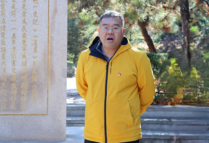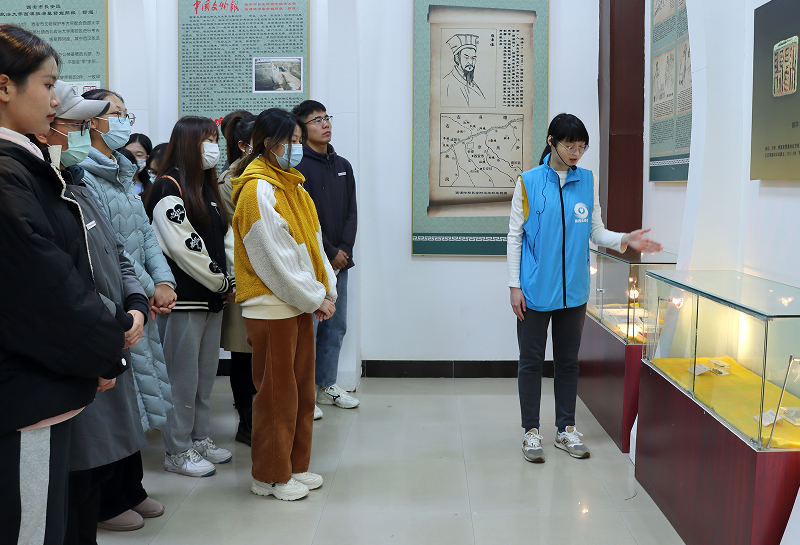 廉洁文化宣传教育中心志愿者、支部入党积极分子牟佳慧通过对展馆内外陈列物品的讲解,为老师与同学介绍了张汤的生平事迹与公正廉洁的精神品质。