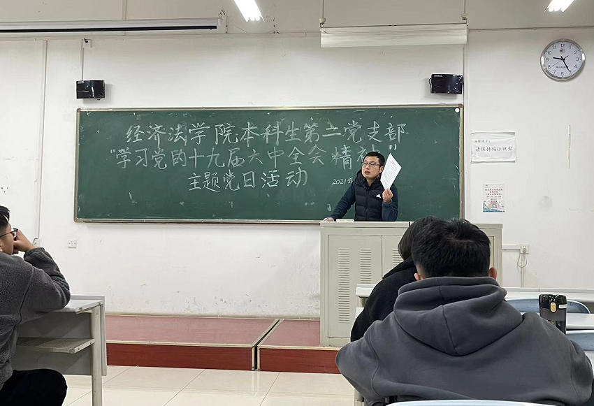 本科生第二党支部在正心楼305教室开展“学习党的十九届六中全会精神”主题党日活动。活动由本科生第二党支部书记李冬冬主持,2021级已递交入党申请书的近100名同学参加。