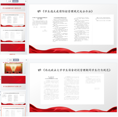 学生宿舍封闭管理期间学生行为规范》,要求同学们在疫情期间遵守学校相关规定,主动配合学校各项疫情防控管理措施;积极做好自身学习就业规划,为升学、求职、就业做好各项准备;在宿舍互帮互助,营造良好的宿舍文化和氛围,为大学时光留下美好回忆;积极投身疫情防控的志愿服务工作中,发挥党员的先锋模范作用,展现青年学子的使命担当。