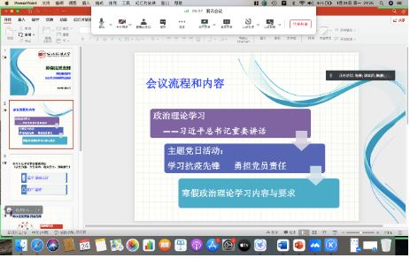 2022年1月24日晚,色情电影 劳保法党支部通过腾讯会议形式开展了“学习抗疫先锋 勇担党员责任”的主题党日学习活动,会议由支部书记张琳主持,全体党员参加。