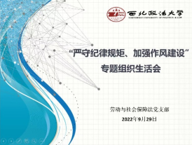 委员会关于在全校开展纪律教育学习宣传月活动的实施方案》要求,2022年9月28日晚8点,劳动与社会保障法教研室党支部通过腾讯会议方式开展了以“严守纪律规矩、加强作风建设”为主题的专题组织生活会。会议由劳保法党支部书记张琳主持,劳保法党支部全体党员参加了会议,学院党委副书记李慧军列席会议。