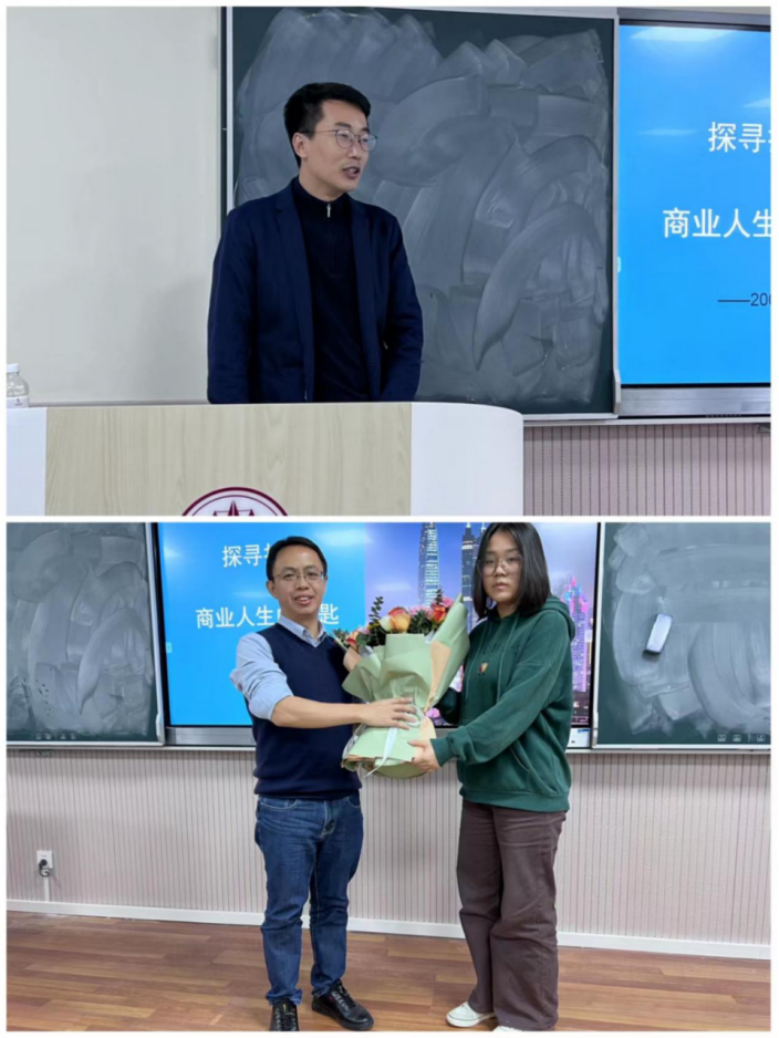 罗绍元从“我是谁?”、“怎么更好地度过一生?”、“为什么要从商?”和“怎么从商?”四个方面与同学们进行交流分享。他首先回顾了个人的成长经历和创业历程,从小镇青年到如今的跨国公司总经理,依靠的是一以贯之的坚持、不愿懈怠的奋进和风口掘金的把握。他着重强调应持续学习,多借鉴多思考。充满磨难的少年时期和求学生活让他对行动和机遇有格外深刻的理解。他认为最好的时机永远在当下,哪怕从零开始,不断积累,终会有触及门槛的一天。