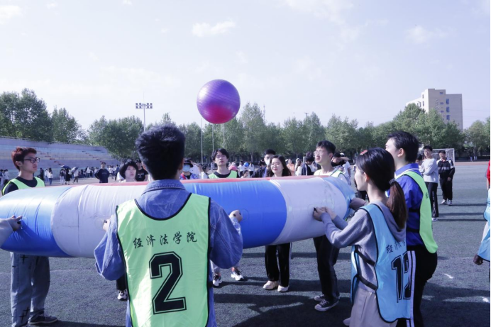 比赛第一项为“八仙过海”。只见六名队员紧抓气垫道具立于起跑线后,裁判一声令下,他们似离弦之箭向前冲刺,折返后和另外六名队员迅速交接,接力下一段奔跑。大家配合默契,劲儿往一处使,风声呼啸而过,活力与青春在此刻被诠释得淋漓尽致。