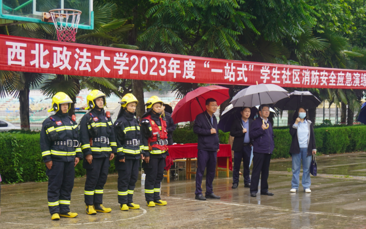 “一站式”学生社区站务委员会全程参与演练并现场指导防火灭火救援要点。