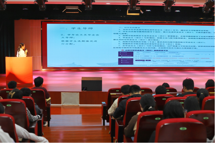 徐靓老师就本科教学管理制度介绍了本科生导师及论文导师职责,明确教学管理制度对学生的要求,解读课程考核标准、毕业与学位资格认定标准,讲解考试要求,告诫同学们遵规守纪。