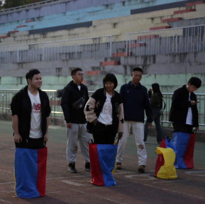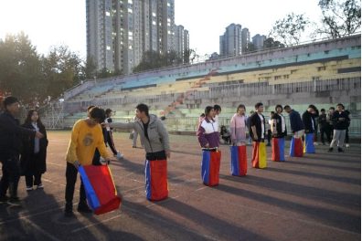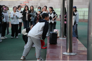 学子积极参与各项比赛,踊跃争先。“抱成团”游戏中,同学们竖起耳朵,以迅捷行动回应主持人的急促号令。快速的奔走带来了紧张的氛围,操场上高潮迭起;拥抱携来了欢心与感动,绿茵场上活力无限。抱成团者姿态“百花齐放”,落单者无奈接受“惩罚”。