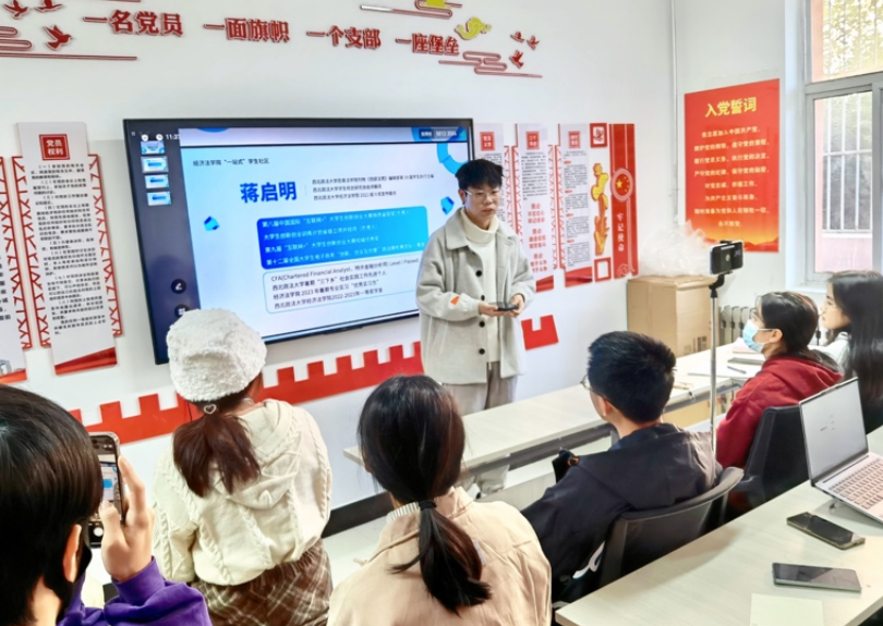 “参加创赛会带来许多收获,不仅可以突破自我,还收获了可贵友谊,结交了一群优秀的志同道合的人。”赵仕坤结合“互联网+”评审规则与自身的参赛经历经验,为同学们分享了如何进行创赛的选题、计划书的构成、答辩PPT制作以及和路演答辩的要点。