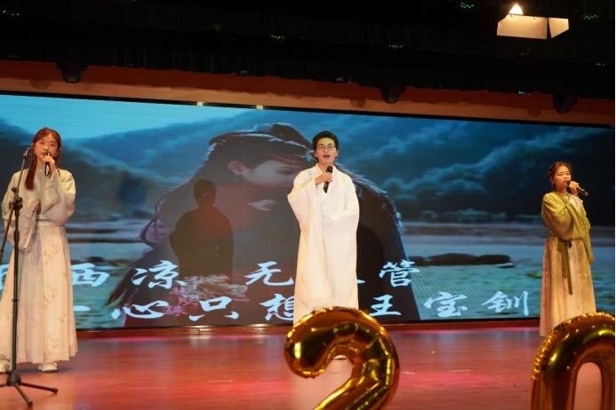 《西凉风月》歌曲串烧由汪静远,武琪婷,金意晗三位同学带来。女声婉转低回,曲径通幽。戏腔声声入耳,惊艳无比。