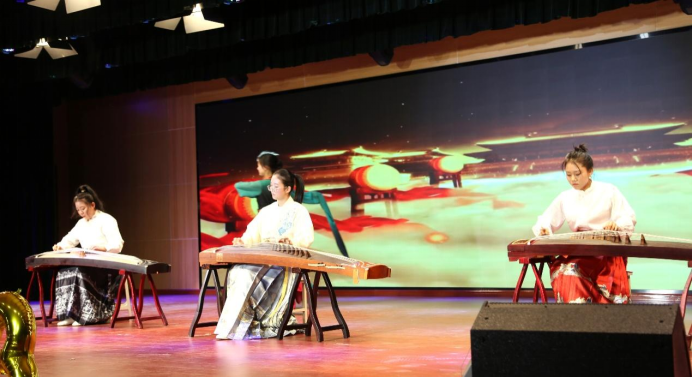 民乐歌舞节目《盛世国乐》呈现在观众眼前。演奏者们以古筝为主角,奏响一曲曲悠扬的旋律。同时,舞台上的中国舞蹈为观众呈现一场覆盖千秋岁月的美妙画卷,让大家共同沉浸在中华艺术的绚丽之中。