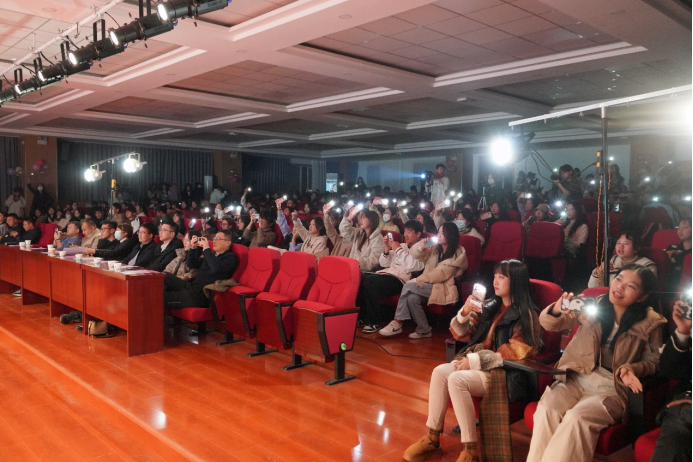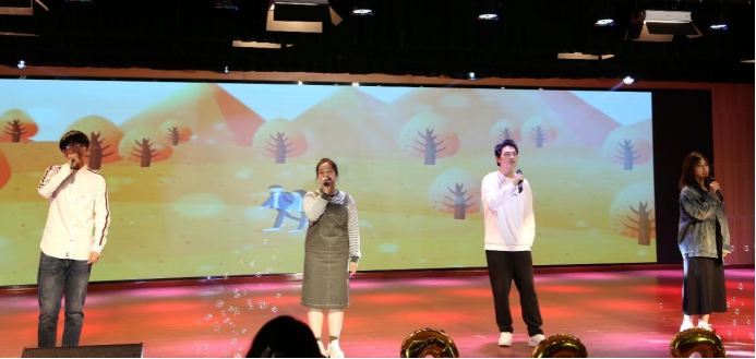 帷幕拉开,一场精彩纷呈的晚会正式开始。欢乐的音乐唤醒同学们的神经,炫目的灯光把无数笑脸照亮。师生共聚一堂,共同观看演出,尽享视听盛宴。