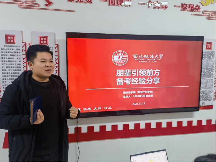 2020级推免同学蒋吉鹏(推免去向:中国政法大学),为在场的2023级同学分享了他的备考经验和心得。