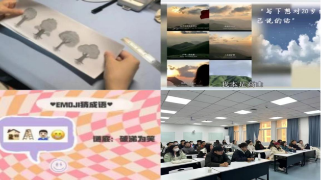 通过观看《从一岁到一百岁,人生真的很短》、《爱并不需要你与众不同》等视频,探讨生命的意义与价值;进行生命线小游戏,让同学们记录自己生命中的重要节点,并分享其中的痛苦与快乐;绘制生命树,记录下自己对生命的思考和畅想;将心理状况和emoji猜成语相结合,寓教于乐,让同学们了解自己的心理状况同时获得快乐。