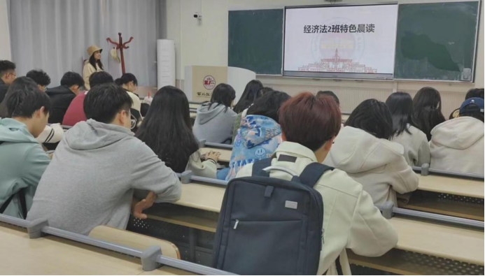 “为学无间断,如流水行云,日进而不已也。”在本周的晨读活动中,7班的同学们共同复习了中国法律史的相关知识与背诵口诀,将课堂所学知识进行了复习巩固,结合老师所提供的素材,进行了趣味的歌曲记忆,进一步加深了对知识的记忆。