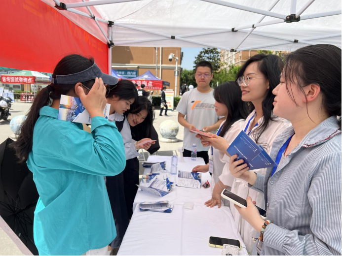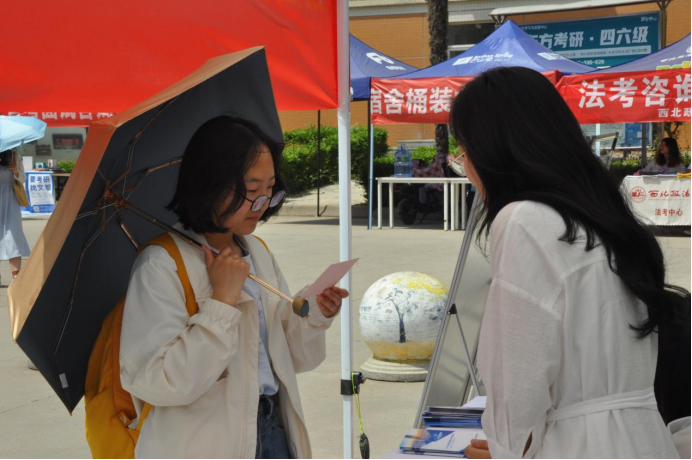 中午十分,炙热的骄阳难挡高涨的热情,同学们积极参加问答互动,思考并回答有关知识产权及其保护的相关问题。随着活动的不断深入,摊位旁渐渐聚集了一群求知若渴的同学,他们都聚精会神地听着工作人员关于知识产权知识的讲解,现场气氛热烈活跃。