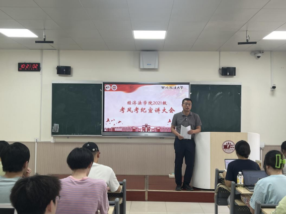 在正心楼405教室召开2021级考风考纪宣讲大会。