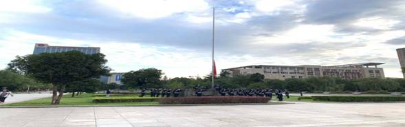 两班共青团员们一齐注目我校公安院国旗护卫队升国旗,庄严而神圣的国歌声回荡在这一片满怀赤诚热土之上,更流转于每位团员的心中。犹记得习近平总书记对我们青年一代的勉励“青年是整个社会力量中最积极、最有生气的力量,国家的希望在青年,民族的未来在青年”,今天,我们正处在人生中最具活力的时期,不但面临着难得的建功立业的人生际遇,也面临着“天将降大任于斯人”的时代使命。新时代的我们一代要继续发扬五四精神,以实现中华民族伟大复兴为己任,不辜负党的期望、人民期待、民族重托,让青春在为祖国、为人民、为民族、为人类的奉献中焕发出更加绚丽的光彩。