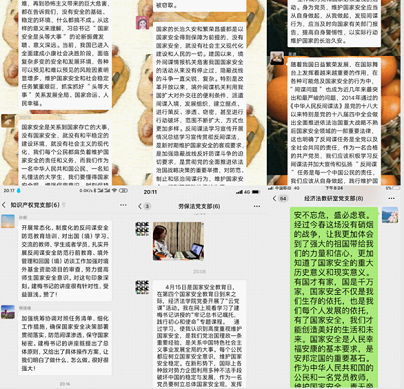 “随着时代发展,国家安全观也有所新发展,非传统安全问题日益严峻。”同学们结合自身经历,深化了对国家安全的内涵的理解,增强了国家安全意识。大家纷纷表示国家安全问题离我们并不遥远,要树立总体国家安全观,坚定信念,坚决维护国家安全。