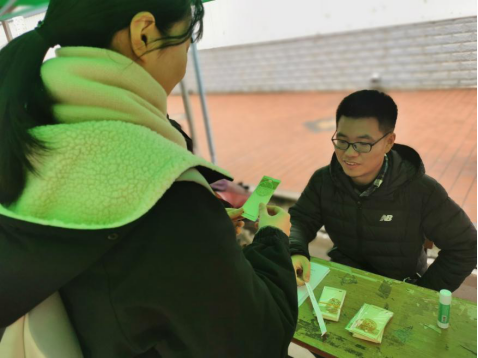 廉洁文化宣传教育中心的同学们在食堂丁字路口活动摊位向前来参与的同学介绍活动的具体内容、分发奖品。来往路过的同学们对五彩斑斓的灯笼以及摊位上准本的精美奖品吸引,纷纷前来参与答题,从中也了解到许多有关历史人物张汤的重大历史事件、中国传统廉洁文化以及张汤墓遗址陈列馆的相关知识。
