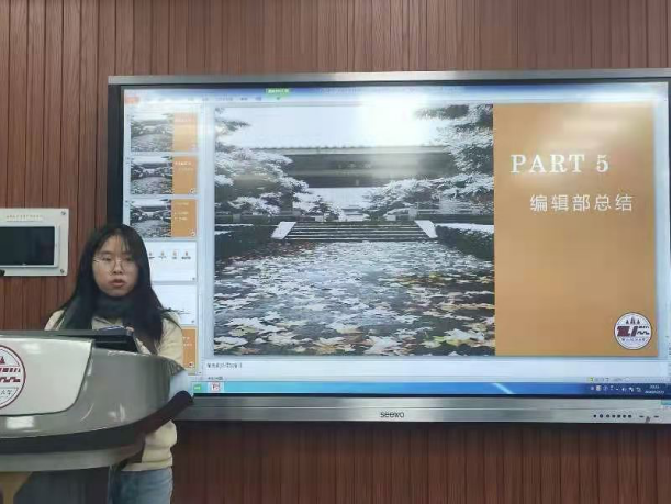 培训部部长刘聪同学对日常讲解的工作进行了总结。她提出了本学期讲解出现的问题,并要求讲解员经常默背讲解稿内容,提高熟悉度,加强汉代历史文化知识的储备。