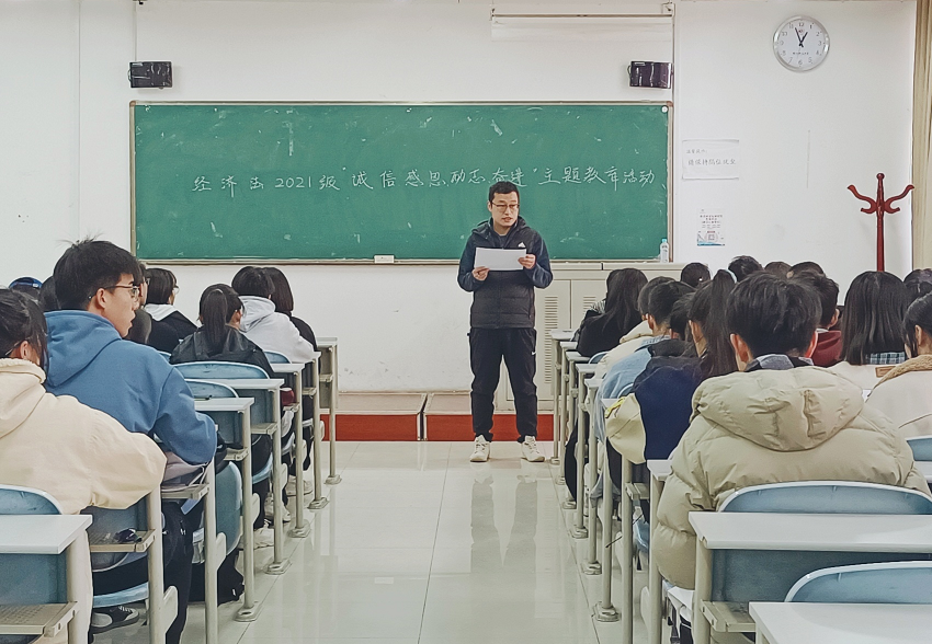 为充分发挥学生资助工作的育人功能,增强学生的诚信意识和责任担当,促使家庭经济困难生更好的学习和成长,倡导并形成受助感恩、励志成才、回报社会的良好风气。11月30日中午,色情电影 在长安校区正心楼305教室开展“诚信 感恩 励志 奋进”主题教育活动。2021级90余名获得国家资助的同学参加。
