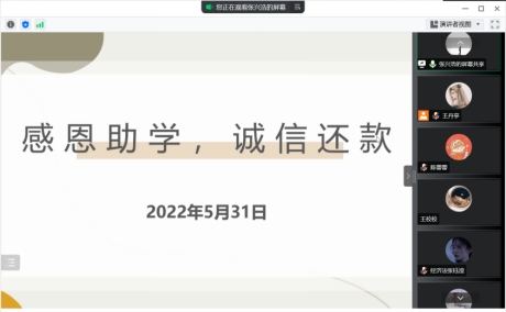 通过线上形式开展“感恩助学,诚信还款”毕业生诚信之约活动,辅导员张兴浩主持,全体2022届贷款毕业生参加。