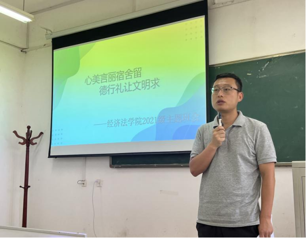 组织2021级学生在长安校区正心楼301教室召开“心美言丽宿舍留,德行礼让文明求”主题班会。2021级辅导员李冬冬参加。