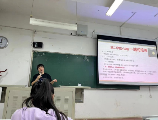 文创培训中心的马老师以“你的未来,试不可挡”为题,详细介绍大学英语四六级、国家计算机等级考试、法考、考研等相关考试的政策与学习方法和经验。对同学们的大学四年学业规划进行了细致的规划与建议,通过优秀学生实际分享经验以及各方面的的优势分析来为同学们答疑解惑,提供学业上的帮助。