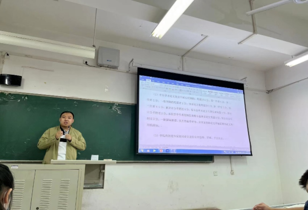 (知识产权学院)开展2022级本科生新生学风学业指导大会。大会由2022级辅导员张兴浩主持,学校文创培训中心马老师主讲,学院2022级本科生300余人参加大会。
