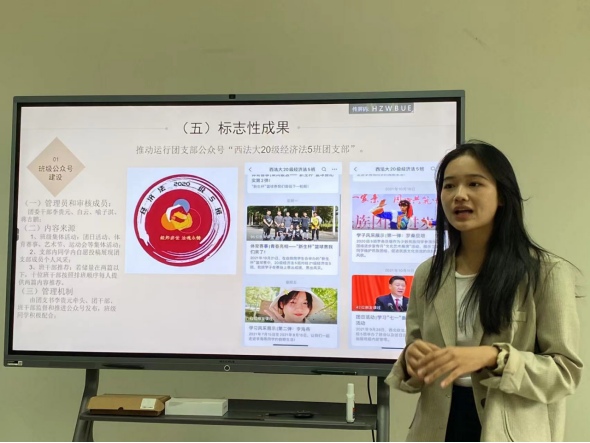 李贵元就如何做好班级建设做了分享,她认为班级凝聚力是在一次次活动中不断增强的,班委应鼓励班级同学积极参加,勇于尝试,发掘班级同学的潜能,给同学们创造展示自身风采的机会,让同学们尽快融入班集体。接着她对班级公众号的运营进行了经验分享,最后她希望各新任班委能勇于探索创新,结合本班实际为本班后续长期发展确定思路方向。