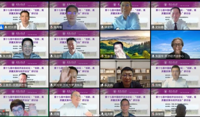 2022年6月12日,第十七届中国经济法治论坛暨“创新、高质量发展与经济法治”研讨会,以线上形式举行。研讨会由中国人民大学经济法学研究中心会 议主办,由天津工业大学法学院、天津市法学会应用法学分会承办,由河北工 业大学人文与法律学院、同济大学经济法治研究中心协办。会议总共分为主旨发言和分论坛讨论。天津工业大学党委副书记陈泮成代表天津工业大学向大会的召开表示热烈祝贺,向全体与会代表致以崇高的敬意和真挚的问候,并对研讨会提出几点希望。天津市法学会党组书记、专职副会长于浩明在致辞中指出与会专家学者要 以习近平法治思想为指导,能够畅所欲言,发表真知灼见,深入思考,形成共识,共同为全面推进依法治国建言献策。中国人民大学经济法学研究中心主任 朱大旗教授代表论坛主办方发表致辞感言。