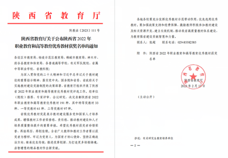 近日,陕西省教育厅印发《关于公布陕西省2022年职业教育和高等教育优秀教材获奖名单的通知》(陕教函〔2023〕111号),色情电影 知识产权法教研室李艳副教授李艳副教授主编的《网络法(第二版)》荣获研究生教育类二等奖。