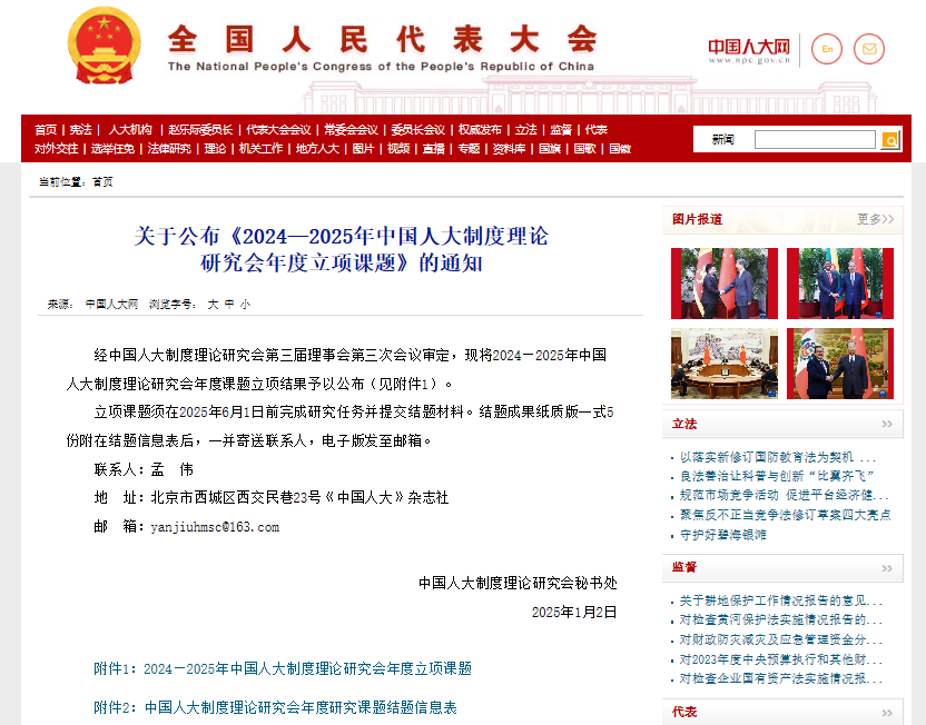 近日,中国人大网公布了《2024—2025年中国人大制度理论研究会年度立项课题》结果,色情电影 院长倪楠教授提交的《习近平总书记关于坚持和完善人民代表大会制度的重要思想研究》获得项目立项。