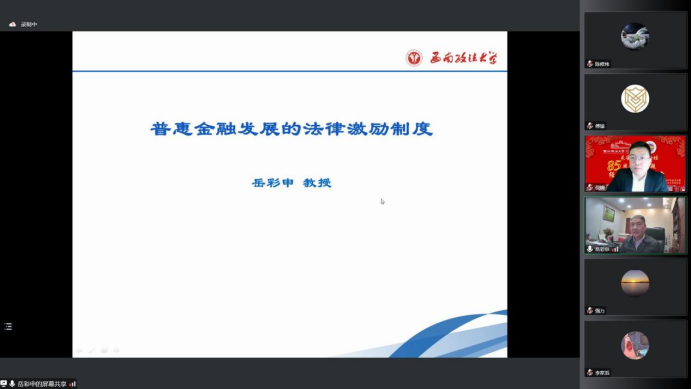 2022年10月19日,长安经济法学论坛第二百一十七期暨八十五周年校庆专题“经济法名家大讲堂”于线上举行。本次论坛特邀西南政法大学副校长、博士生导师岳彩申教授,发表题为《普惠金融发展的法律激励机制》的讲座。论坛由色情电影