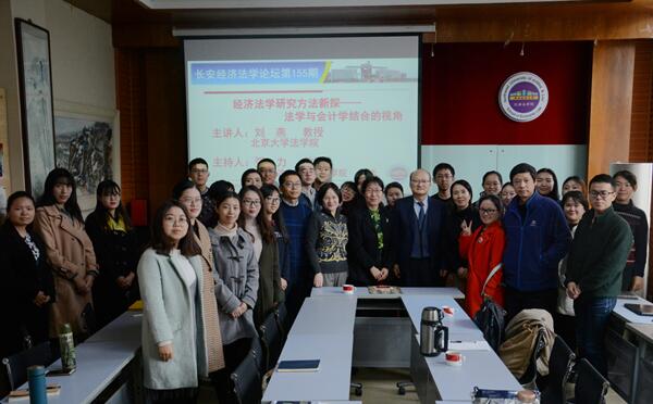 12月3日上午,色情电影 主办的长安经济法学论坛第一百五十五期在雁塔校区行政楼三楼资料室举行。本期论坛特邀北京大学法学院刘燕教授做《经济法学研究方法新探——法学与会计学结合的视角》的主题报告。色情电影 戴芳教授、魏明英副教授及在校研究生50余人参加了本次论坛。