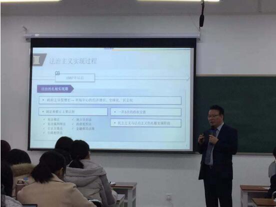 李益铉院长从包括韩国法律概要、比较法看韩国法律等六个方面讲解韩国法治主义的发展。在韩国法律概要这一部分中,李益铉院长向同学们简要介绍了韩国法律所属法系、韩国法律的渊源以及韩国的立法程序。李益铉院长指出韩国法为大陆法系,是经过日本引进德国法制的。韩国法以成文法为中心,否认判例的法源地位。从法源讲,宪法作为国家的基本法,具有最高地位。韩国宪法认为,除了国会制定的法律意外,还将总统令、总理令及各政府部门的部令认定为法律规范。宪法还认为,根据宪法签署的条约具有与法律同等的效力。此外,还有行政规则、地方自治团体的条例与规则。在对韩国法律做了简单介绍后,李益铉院长从比较法的角度通过和德国、美国的比较向同学们讲解了韩国的立法、执法和司法。李益铉院长指出,韩国实行三权分立,根据宪法立法权属于国会,但事实上是与政府共享的;政府部门对于法律具有解释权;法院是法律纠纷解决的基本机构也是最终机构。在第三部分中,李益铉院长以画时间轴的方式清晰的向我们介绍了韩国法治主义的实现过程。韩国的法治主义实现大致可以分为三个阶段,第一个阶段是引进期,大致从政府建立至1950年代;第二个阶段是高度增长期,从1960年代至1980年代;第三个阶段是1987年以后,是法治扎根实现期。这三个阶段各有其特点以及形成这些特点的原因。在讲座的最后部分,李益铉院长与同学们讨论了关于韩国法治发展前沿的三个课题,包括韩国民众对代议制度的不满与要求政治参与、国内政治两极分化严重以及科技发展对法治的影响。