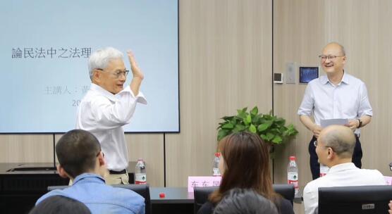 与谈环节中,韩松教授表示研究部门法的人都是在谈制度,但是纯粹的法理讲得很少。王泽鉴老师和黄茂荣老师的著作都是我们在课外补充法理知识必须要拜读的。我们在学习中要注重制度之后的法理。朱时敏老师表示,在我国现在的司法实践中普通法院个案的裁判对其他案件并不具备普遍性,大陆的司法解释大多在填补法律漏洞,法律漏洞的填补行为是立法权行为还是司法权行为。对此黄茂荣教授回答到,个案对其他的案件其实是有借鉴意义的 为了维持法律的继续性和越来越完善,基于平等原则,其他法官在没有充分的理由的情况下是需要遵守的。最后,李其瑞教授总结此次讲座“法外论法”,引起了我们的历史的思考。
