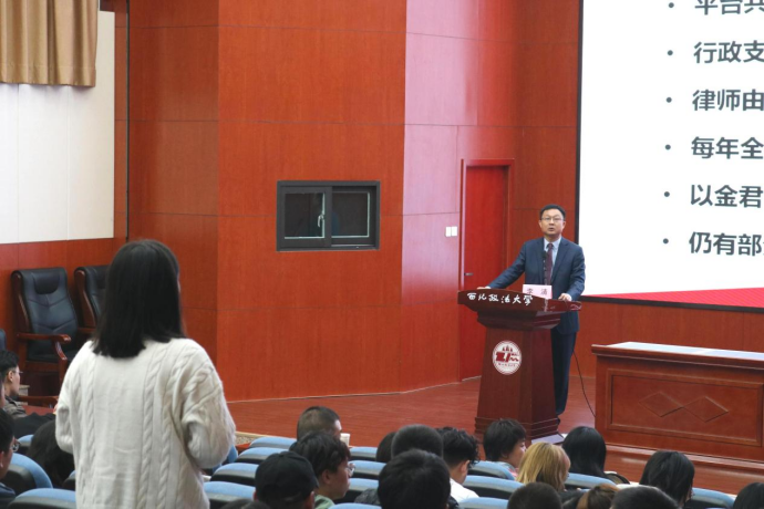 雁塔校区二号教学楼人权报告厅成功举办。本次讲座特邀我校九二届校友、君和律师事务所合伙人李清律师做主题报告。