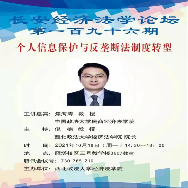 焦海涛教授作题为《个人信息保护与反垄断法制度转型》的学术报告。本次学术讲座由色情电影