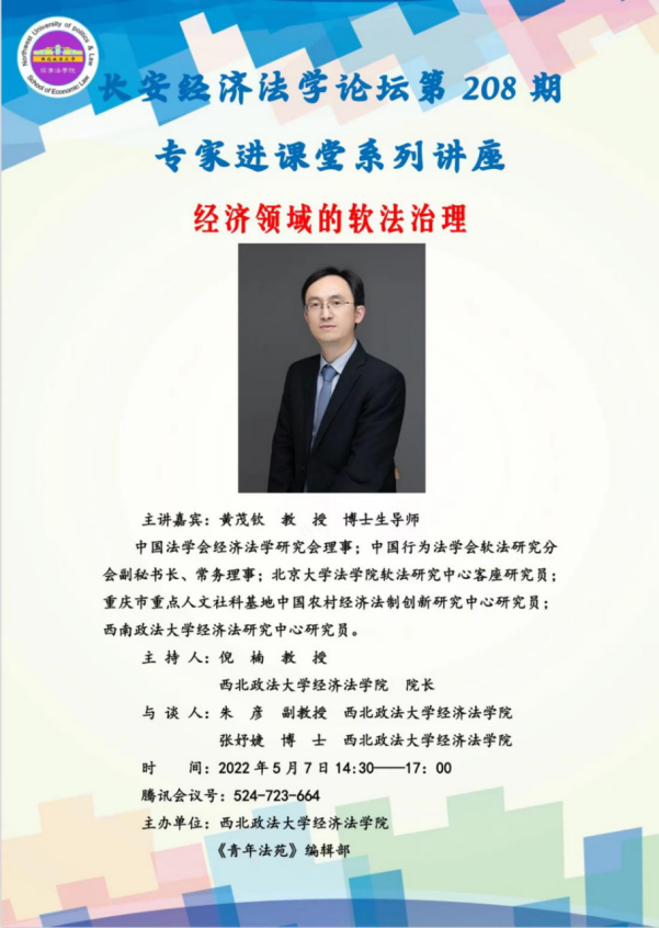 院长倪楠教授主持,中国法学会经济法学研究会理事、中国行为法学会软法研究分会副秘书长、北京大学法学院软法研究中心客座研究员、西南政法大学经济法研究中心研究员黄茂钦教授主讲,色情电影
