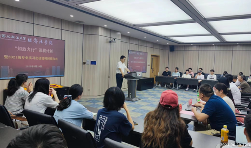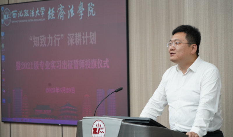 6月29日中午,经济法(知识产权)学院在长安校区诚意楼401教室举办“知致力行 深耕计划”专业实习出征誓师大会。校党委委员、副校长张荣刚出席会议,学院实习工作领导小组成员、2021级、2022级学生代表参加。大会由经济法(知识产权)学院教授肖新喜主持。