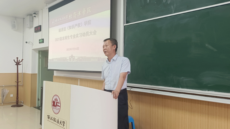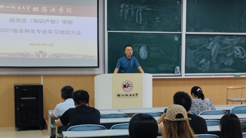 7月10日下午,经济法(知识产权)学院在长安校区天平楼AJ22教室召开2021级本科生专业实习动员大会。学院党委副书记李慧军、副院长薛亮、教务办徐靓老师及2021级全体学生到场参加,会议由辅导员李冬冬主持。