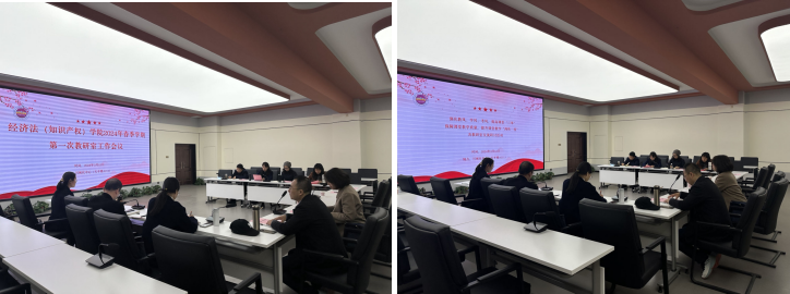 本学期第一次教研室主任工作会。会上首先就《经济法(知识产权)学院关于开展教风专项督查整改暨“四课观摩”专项行动实施方案》进行安排部署,教务办徐靓老师向各教研室反馈近期试卷、论文核查情况,薛亮副院长就审核评估教学相关工作及近期本科教学重点工作进行了强调和说明,李建梅书记就进一步加强师德师风建设,规范教师职业行为做了强调。