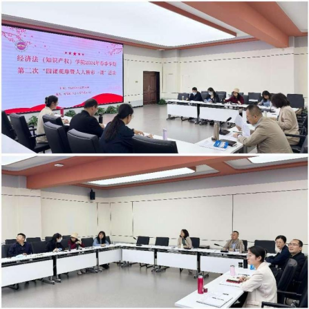 (知识产权学院)在长安校区可视化中心组织开展2024年春季学期第二次“四课观摩暨人人精彩一课”暨教育教学审核预评估专家意见反馈会,学院党委书记李建梅、各教研室主任、教务办教学管理干部共同参加,会议由学院教学副院长薛亮主持。